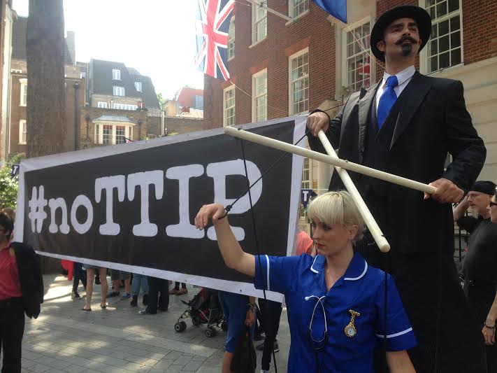 3. The end of public services – worsening the threat of poverty and unemployment is the destruction of social safety nets, as the red carpet is rolled out for US companies to bid for healthcare contracts threatening to ‘destroy the NHS’ according to some MPs. Leaked documents have exposed the lack of any safeguards to defend such basic services. TTIP threatens to stand the whole anti-cuts movement on quicksand, pitting the movement to reverse privatisation against international law itself. The corporate onslaught against Slovakia‘s relatively leftist government since 2006 foreshadow what’s to come – already one foreign private healthcare company has seized €29.5 million in public assets for their attempt to limit private profiteering in healthcare, and another is trying to block the Slovak government from providing universal healthcare cover.